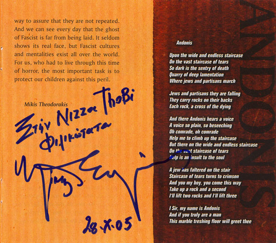 MIKIS THEODORAKIS actual News Μικής Θεοδωράκης Music and Universal Harmony FRIDAY 10 MARCH 2006