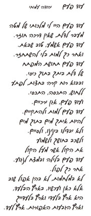 AGAIN To die and to exist again. To be with you water inside water Undistinguishable from each other, and to reach orgasm And to lay in the dark and to hear The voice above the voice again at night and to touch the forehead and then to fall Not in wars, not in them will I fall again But here and now in the land of uniqueness the land without me, the land without you The land of gray hills The land for eternity. © Copyright: Rafael Manory